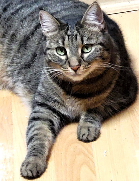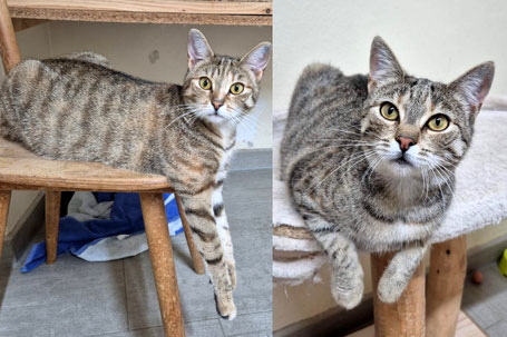 Anfangs ist der hübsche Tigerkater noch ein bisschen zurückhaltend, wenn er aber Vertrauen gefasst hat, ist er ein absoluter Schmusekater und streicht uns um die Beine.