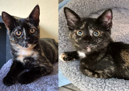 Wer hat ein Plätzchen frei für die hübsche Schildpattkätzin Tortie und ihren süßen Freund Tobi? Die beiden hängen sehr aneinander und möchten unbedingt gemeinsam in ihr neues Zuhause umziehen. Sie geben sich Sicherheit und kuscheln gerne miteinander. Tortie und Tobi haben sich inzwischen zu anhänglichen, menschenbezogenen Kätzchen entwickelt, die sich sehr gern streicheln lassen.