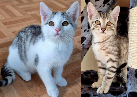 Mit sechs Monaten müssen sie wie alle Tierschutzkätzchen noch kastriert werden. Geimpft, entwurmt und gechippt sind sie bereits.