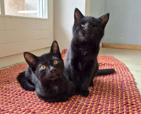 Die süßen Mädels mit dem samtigen, schwarzen Fell lieben es zu spielen, toben genauso wie gesunde Kätzchen herum und sind auch sehr menschenbezogen. Beide kuscheln sehr gerne und lassen sich auch gerne herumgetragen.