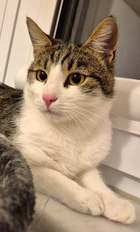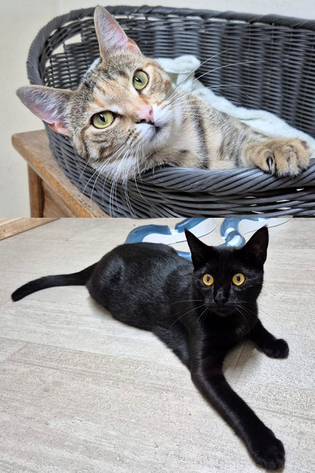 Die hübsche dreifarbige Kätzin Tara und Twinky, das Katerchen mit der auffallenden Gesichtszeichnung, sind zwei süße Katzenkinder, die nun auf der Suche nach ihren Menschen und einem eigenen Zuhause sind. Sie sind verspielt und sicher auch bald richtige Schmusekatzen. Twinky braucht noch etwas Zeit, deshalb suchen wir geduldige Menschen die ihm diese geben. Und wir sind uns ganz sicher, dass die beiden sich zu tollen Familienkatzen entwickeln werden. Tara und Twinky sind Mitte Mai 2025 geboren.