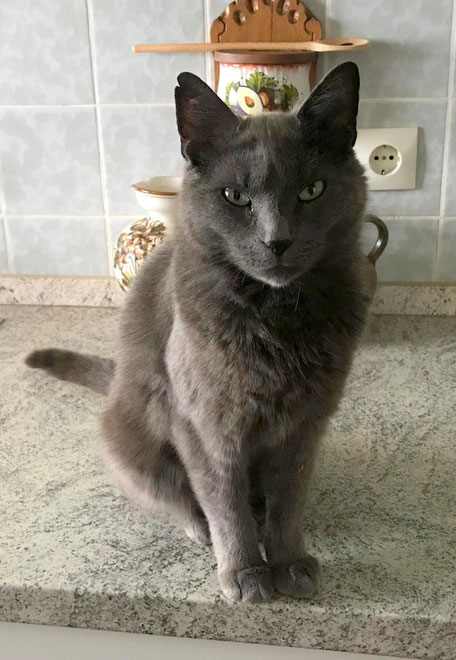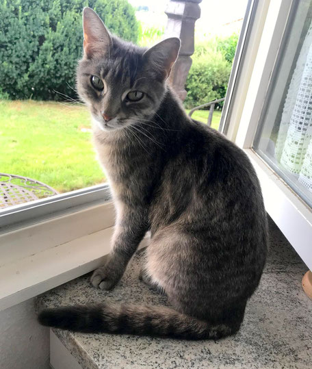 "Die Graue" ist die Mama von Trixie. Sie ist 6 Jahre alt und wie ihre Tochter sehr zutraulich. Sie wünscht sich ein ruhiges Zuhause. Die Mamakatze mag auch Kinder, wenn sie nicht zu wild sind.